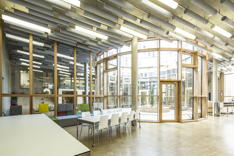 Gastro nábytek na míru – stůl a židle od českého výrobce SANTAL pro moderní firemní cafeterii.